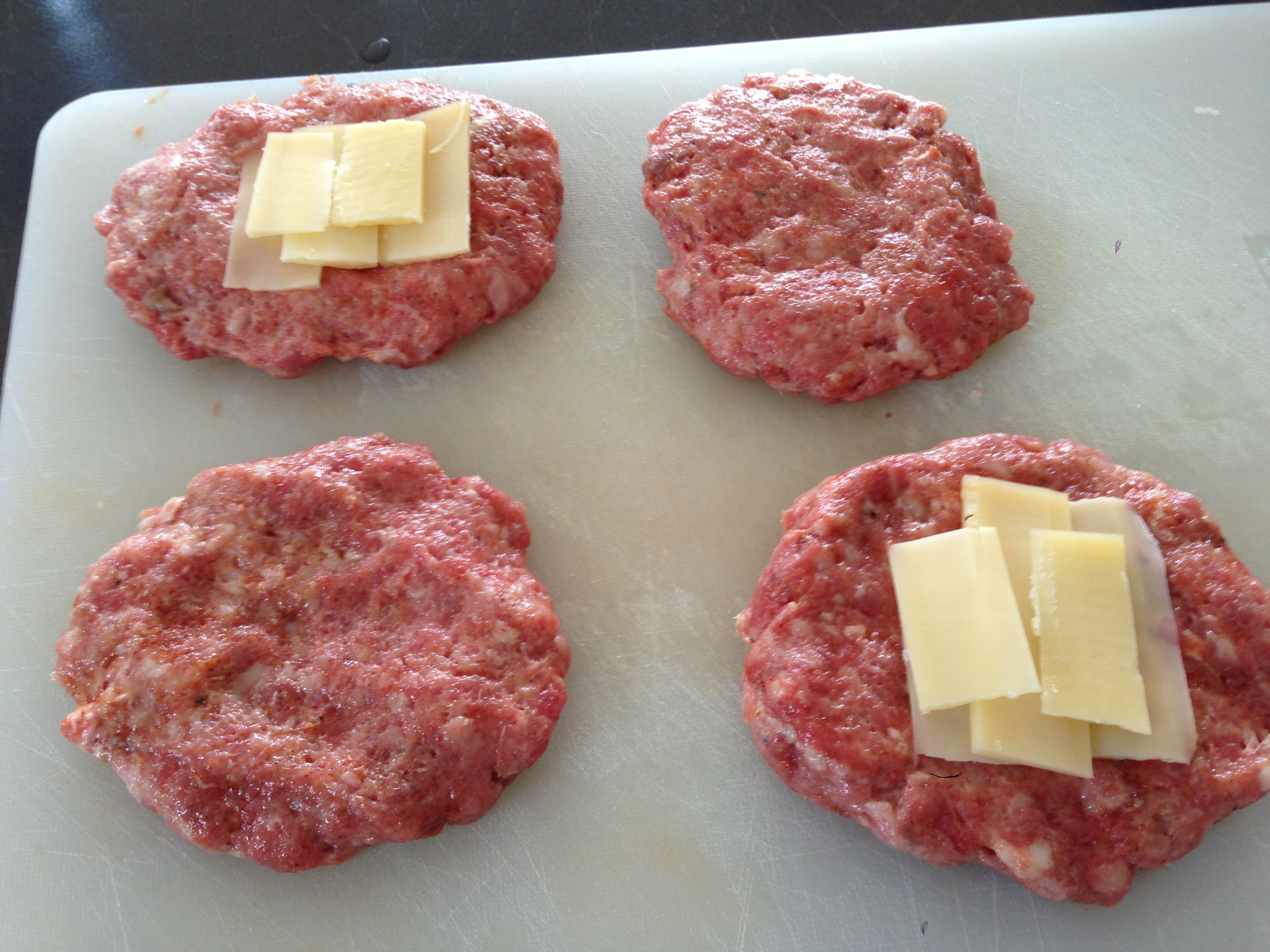 - Pattys mit Dijon bepinseln und medium grillen – animal style, nach dem Wenden mit Käse belegen und schmelzen lassen