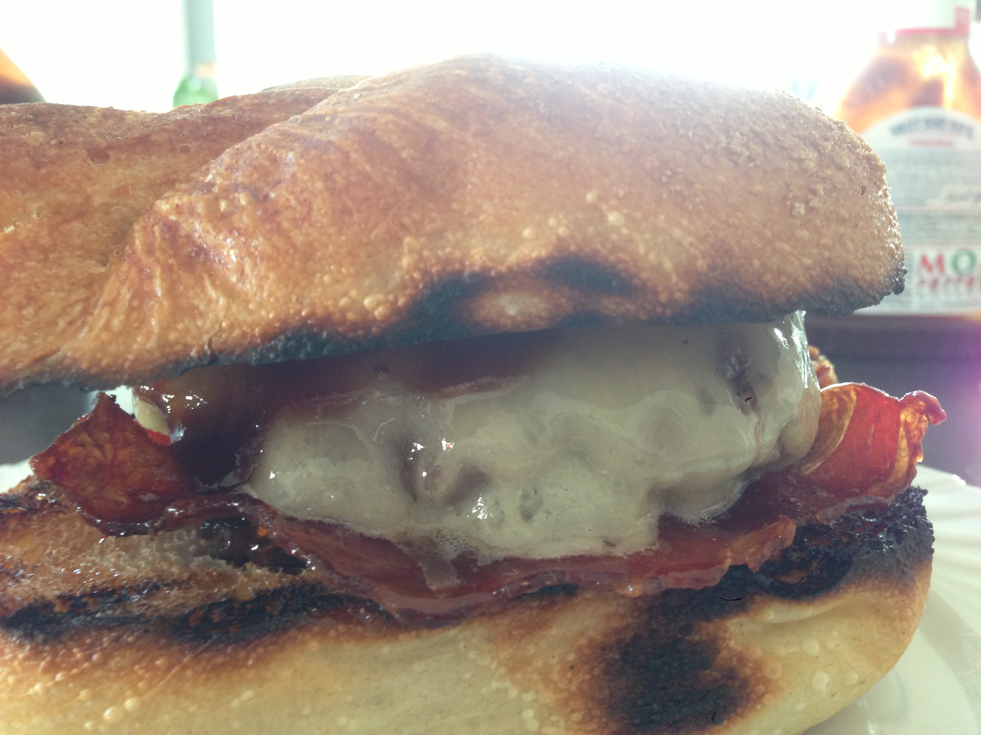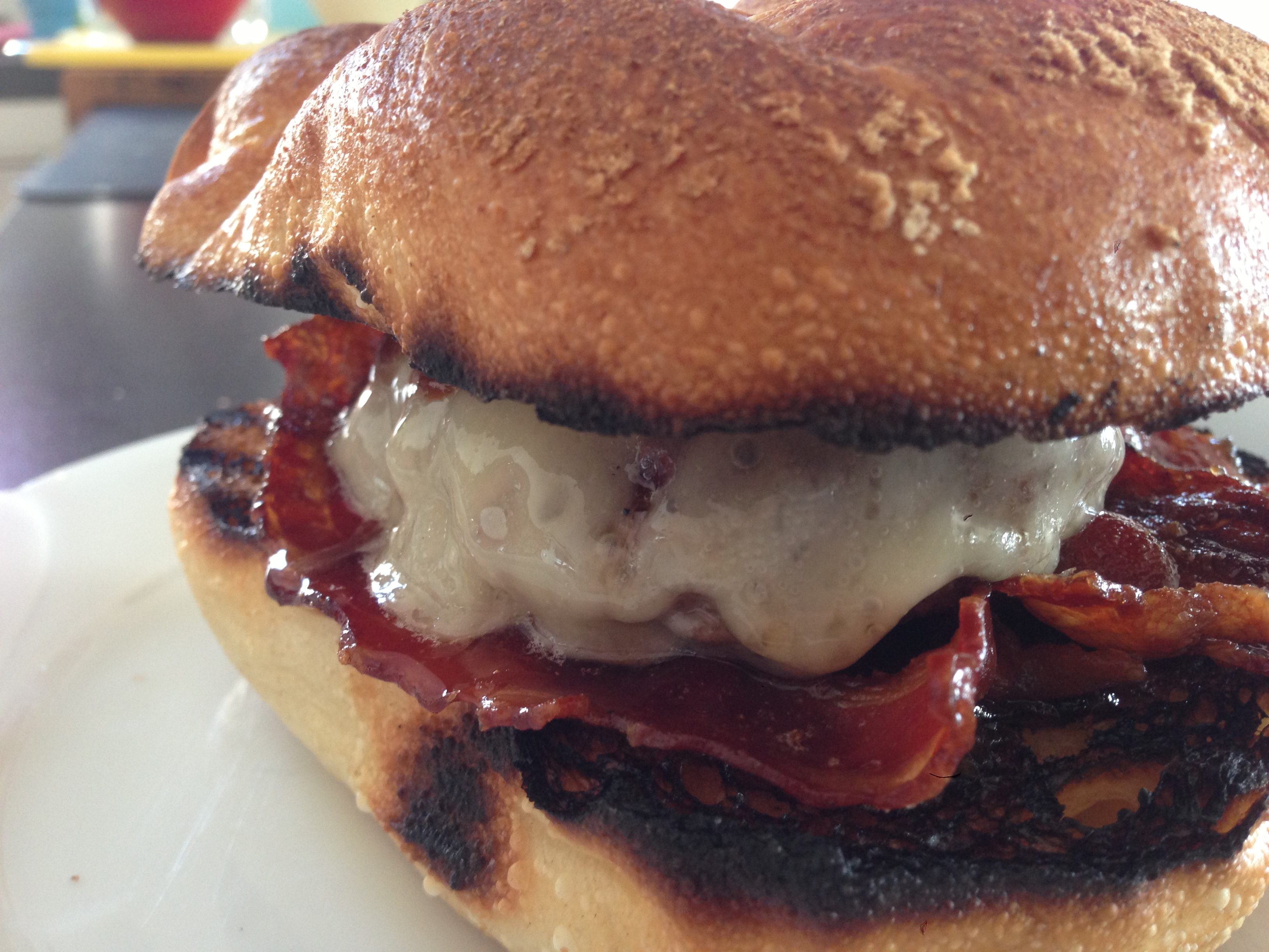 - Unteres Bun mit Ketchup einstreichen, mit Ruccola belegen, gegrillte Randig scheibe druff, Bacon Jam, Patty mit Käse druff, Mayo, oberer Bunteil, fertig ist die Geilheit pur!