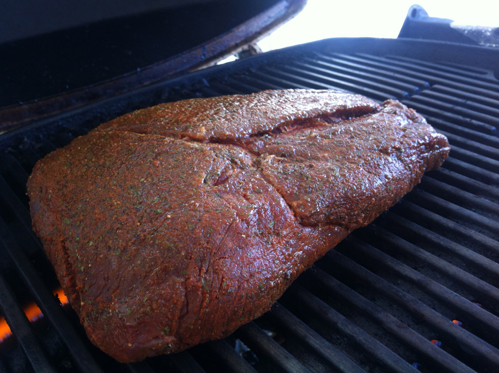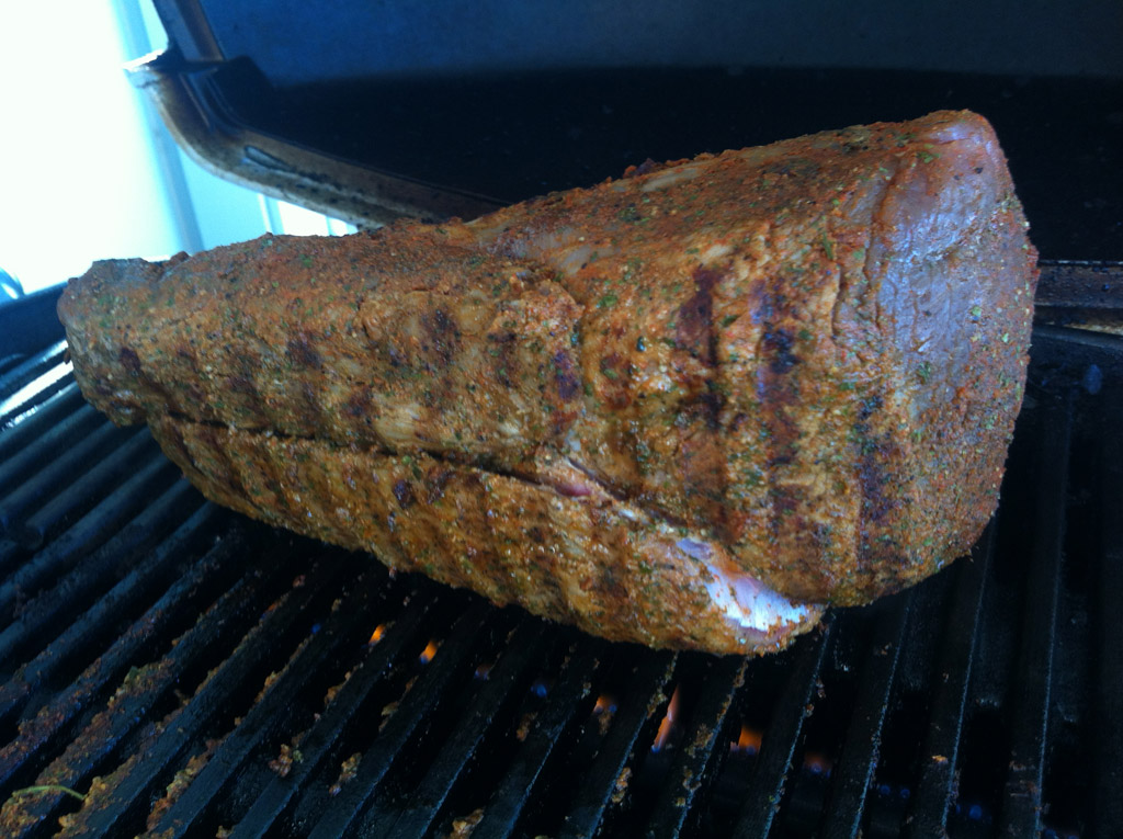 - Randig in mitteldicke Scheiben schneiden, mit braunem Zucker, Salz, Koriandersamen und Chiliflocken berieseln und grillen.