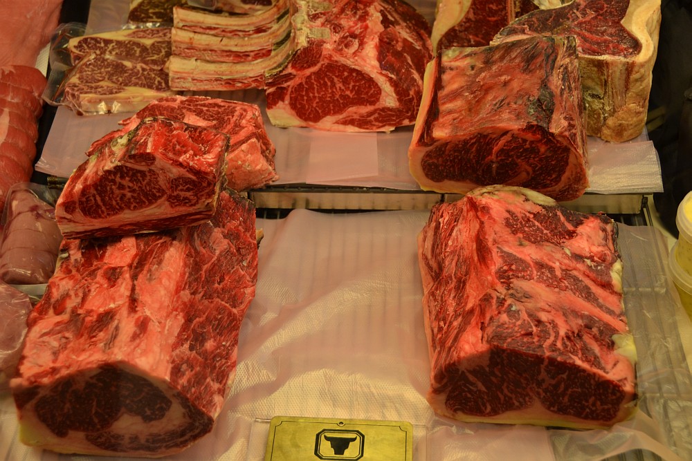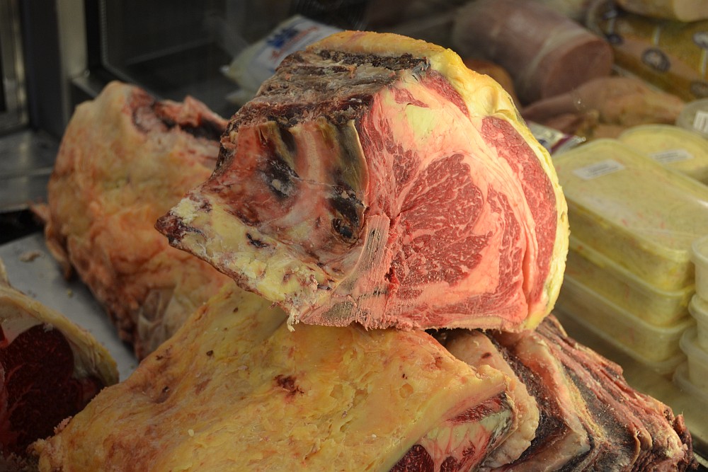 Eine Mischung aus Irischem Hereford Dry Aged Rib Eye mit schön marmoriertem heimischem Rumpsteak wurde frisch durch den Fleischwolf gedreht, grobe Scheibe. Dann mit LLum de Sal Solomillo Rub gewürzt.